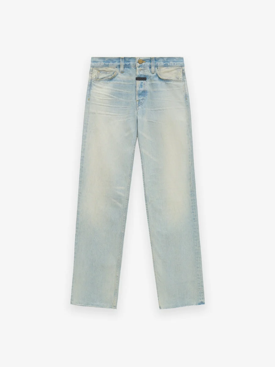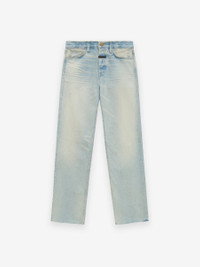 The Collection 8 Jean is made in the USA from vintage-washed Japanese denim and designed in a timeless straight-leg fit. The five-pocket style is detailed with antique brass hardware and a raw ankle hem. The Fear of God leather label is stitched on the back pocket. DETAILS - 100% COTTON DENIM - CLASSIC STRAIGHT LEG FIT - 5-POCKET STYLE - ANTIQUE BRASS HARDWARE - RAW ANKLE HEM - LEATHER FEAR OF GOD LABEL - MADE IN USA