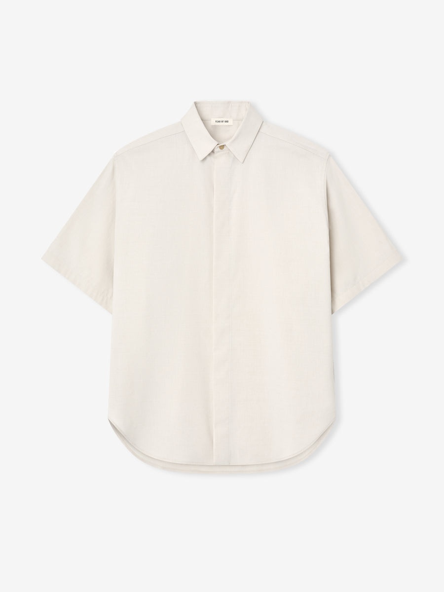 The Classic Short Sleeve Shirt is tailored in Italy from virgin wool-cotton blend with elastane for stretch comfort. The classic Oxford style is remade with relaxed proportions, and minimalist covered placket with horn buttons. DETAILS - Fabric: 46% Virgin wool, 52% cotton, 2% elastane - Model is 6'1" and wears size Medium - Relaxed fit - Point collar - Covered plackets - Horn buttons - Barrel cuffs - Fear of God - Made in Italy