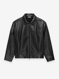 The cropped leather jacket is crafted in Italy from a croc-embossed leather, complemented by an iridescent cupro lining. Additional details include a shirt collar, full front zipper, side pockets, and Fear of God label stitched at the back collar. DETAILS - FABRIC: 100% CROC-EMBOSSED LEATHER - LINING: IRIDESCENT CUPRO - POCKETING: 100% COTTON - BOXY CROPPED FIT - POINT COLLAR - FULL ZIP FRONT ZIP - CHEST AND SIDE POCKETS - FEAR OF GOD LABEL - MADE IN ITALY