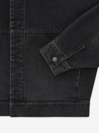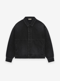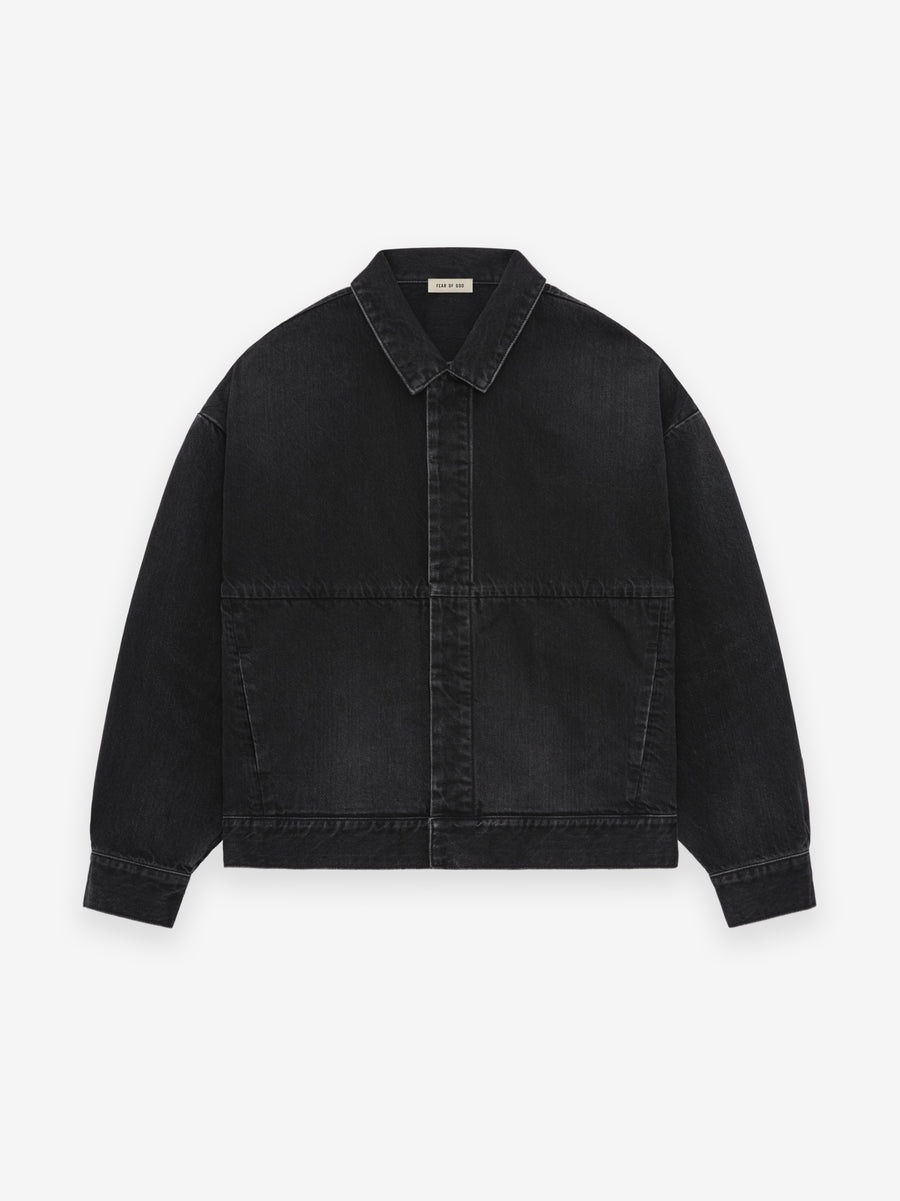 The Denim Trucker Jacket is crafted in Japan from a soft faded denim in a cropped, boxy fit. The minimalist trucker style features a shirt collar, a covered placket with antique metal buttons, and side pockets. A Fear of God label is at the back collar. DETAILS - 100% COTTON DENIM - RELAXED FIT - SHIRT COLLAR - COVERED PLACKET - SIDE POCKETS - ANTIQUE METAL HARDWARE - LEATHER FEAR OF GOD LABEL - MADE IN JAPAN