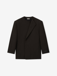 The Crewneck Jacket is tailored from double-weave virgin wool with a matte finish, offering a substantial, sculptural weight and all-season volume. Designed with a relaxed, tailored fit, the collarless silhouette features a versatile lapel that can be worn open and while the waist belt can be half-belted, or unbelted. Additional details include full lining and side-seam pockets. The piece is finished with the iconic Fear of God four-stitch label at the back collar.