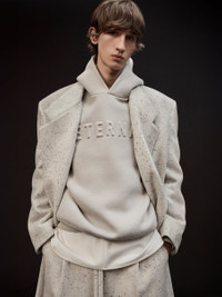 The Eternal Hoodie is made in Portugal from a heavy cotton blend with an embossed "ETERNAL" logo on the front. The signature Fear of God fit is evident with a relaxed silhouette, dropped shoulders, double-layered hood, rib-knit cuffs and waist hem. Additional details include side pockets, and a Fear of God label is stitched on the hood. DETAILS - FABRIC: 69% COTTON, 31% POLYESTER - EMBOSSED ETERNAL LOGO - RIB KNIT CUFFS, WAIST HEM - RELAXED FIT - DOUBLE LAYER HOOD - SIDE POCKETS - FEAR OF GOD LABEL - MADE IN PORTUGAL