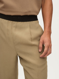 The Everyday Trouser is the modern sportswear update to the more formal pleated trouser. The Italian viscose crepe fabric and Fear of God branded elastic waistband merge to provide casual ease and everyday comfort. The Japanese perforated ultra suede pocketing adds a lux internal touch. The trouser is designed to style casually or formally throughout the wardrobe. DETAILS - RELAXED STRAIGHT LEG FIT - SIDE SEAM POCKETS - BACK WELT POCKETS - LEATHER FEAR OF GOD LABEL - FEAR OF GOD BRANDED ELASTIC WAISTBAND - JAPANESE PERFORATED ULTRA SUEDE POCKETING - ITALIAN VISCOSE CREPE - MADE IN USA