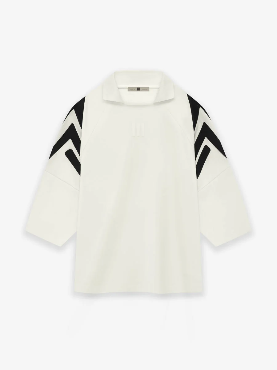 The Fear of God Athletics Goalie Jersey is crafted in a French tricot fabric. The jersey is designed in a relaxed fit with a rib polo collar and iconic stripes on the sleeves inspired from the 1980's. Minimalist branding is symbolized by a sueded 3-Stripe logo on the center front and a sueded black bar label at the back collar. DETAILS - Oversized Fit - 100% Nylon Dry Tricot - Rib Collar - Bonded Seams - Raglan Sleeves - Sueded 3-Stripe Logo on Center Front - Sueded Black Bar Label at Back Collar - Imported