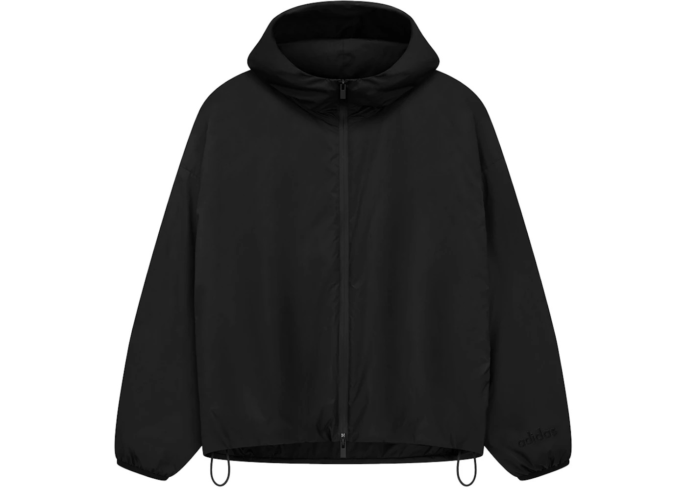 The Fear of God Athletics x adidas Puffer Jacket is designed for warmth with a high loft 100G fill and water-resistant shell. The mockneck hoodie jacket reflects a contemporary aesthetic with an oversized fit in the body and sleeves. Functional details include a full front waterproof zipper, side seam pockets with a perforated 4-way stretch lining, and elastic binding frames the hood, cuffs, and waist hem. Branding is realized in a sueded texture: adidas Fear of God logo on the back and black bar label on the hood. - Season FW23 - Color Black - Release Date 2023-12-03 - Retail Price 500 - Featured false - Uploaded By LL