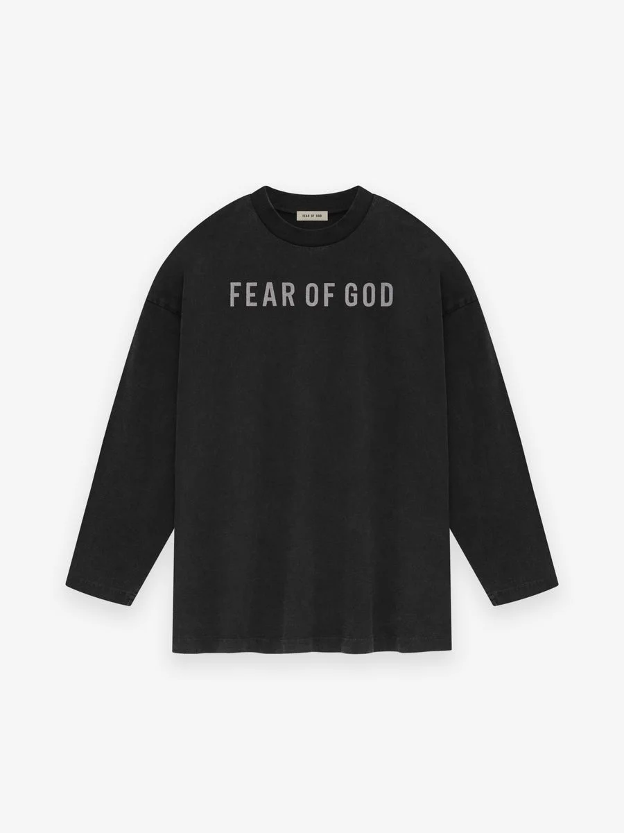 The Long Sleeve Tee is made in Portugal from a heavy 100% cotton jersey to provide depth and structure to a relaxed fit. Branding is represented in a heavily textured printed Fear of God logo on the front, printed Thunderbird on the back, and a Fear of God leather label at the back collar. DETAILS - FABRIC: 100% COTTON - RELAXED FIT - PRINTED FEAR OF GOD ON FRONT AND THUNDERBIRD ON BACK - RIB KNIT CREWNECK - LEATHER FEAR OF GOD LABEL - MADE IN PORTUGAL