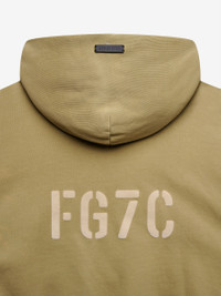 The FG7C hoodie is handcrafted with a sun fade wash process and antique brass hardware to create a unique vintage piece that will vary in appearance. The FG7C logo on the back is stenciled in textured velvet flocking, inspired by vintage American military sweats. Ribbed knit cuffs and waistband frame the piece. DETAILS - VINTAGE SUN FADE - FG7C STENCILED IN TEXTURED VELVET FLOCKING ON BACK - ANTIQUE BRASS SNAP HARDWARE - RIBBED KNIT CUFFS AND WAIST HEM - KANGAROO POCKET - LEATHER FEAR OF GOD LABEL - USA COTTON FLEECE 23OZ - MADE IN USA