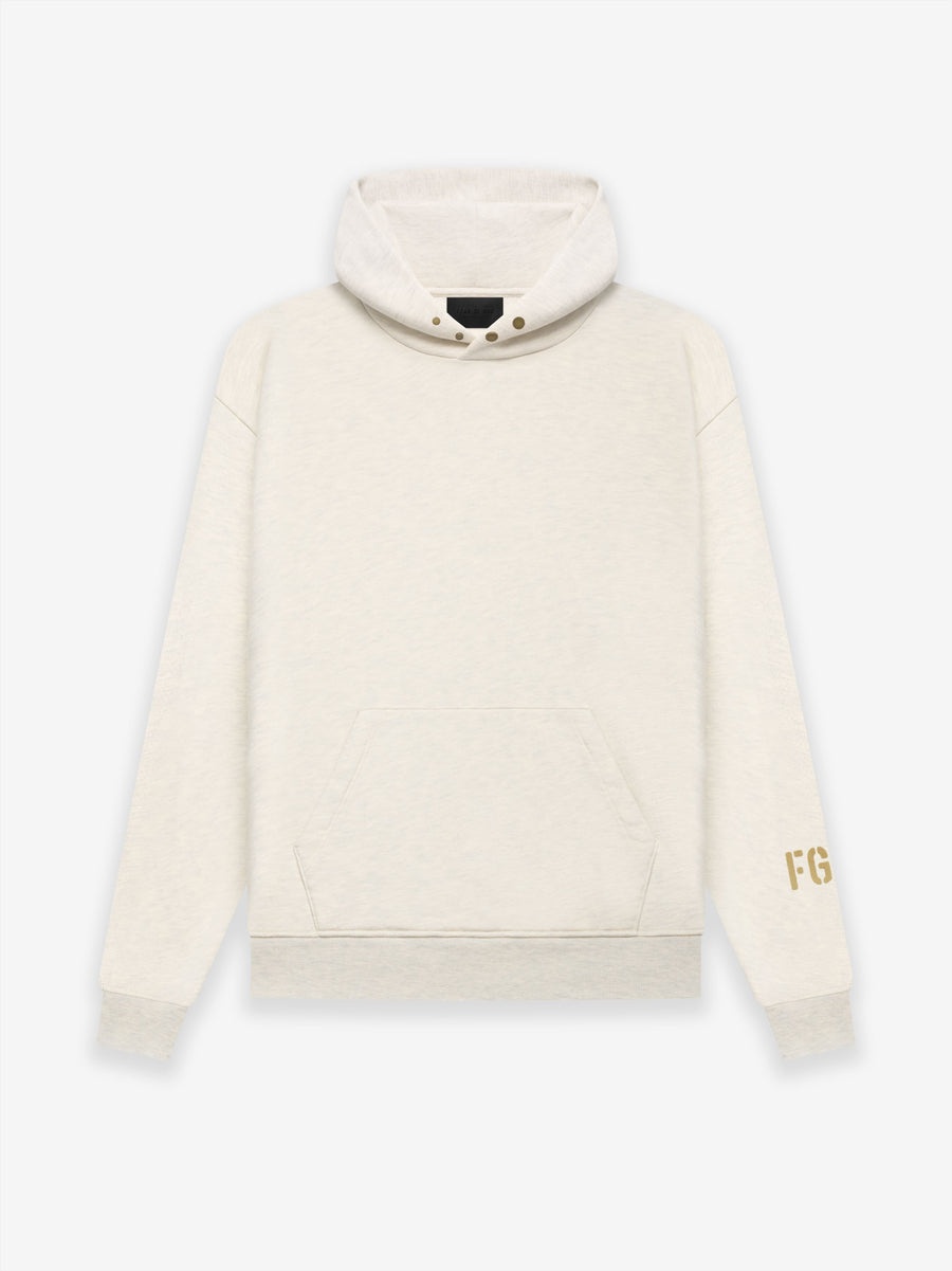 Exclusive to Fear of God, the limited edition FG7C Hoodie celebrates the Seventh Collection. The FG7C logo is stenciled in textured velvet flocking with antique brass hardware to provide a vintage appearance. The piece is framed by ribbed knit cuffs and a waistband with a kangaroo pocket and a leather Fear of God label on the hood. DETAILS - FEAR OF GOD EXCLUSIVE - FG7C LOGO IN TEXTURED VELVET FLOCKING ON SLEEVE - ANTIQUE BRASS SNAP HARDWARE - RIBBED KNIT CUFFS AND WAISTBAND - KANGAROO POCKET - LEATHER FEAR OF GOD LABEL - USA COTTON FLEECE 23OZ - MADE IN USA
