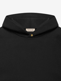 The Eternal hoodie is made in a robust USA cotton fleece to contribute body and drape. The fit is relaxed in the body with slightly dropped shoulders, a kangaroo pocket, rib-knit waist hem, and cuffs. Branding details include an Eternal logo in heavyweight flocking across the back, and a Fear of God leather label stitched on the double-layered hood. DETAILS - 100% USA cotton fleece - Rib-knit collar, waist hem, and cuffs - Eternal logo in heavyweight flocking - Fear of God leather label - Made in USA