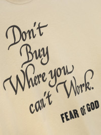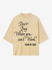 The Freedom Now Tee is crafted in the USA from 100% heavyweight cotton jersey and features a garment wash with a sunfade treatment for an authentic vintage appearance. The hand-printed graphics are inspired by the civil rights movement. This rib-knit crewneck tee has a relaxed fit with drop shoulders and 3/4 sleeves. A Fear of God label is stitched at the back collar. DETAILS - 100% cotton jersey, 290 gsm - Model is 5’9” 1/2 and wears size Medium - Relaxed fit: loose in body, drop shoulders - Garment wash with a sunfade - Hand printed civil graphics - Rib-knit crewneck - Made in USA