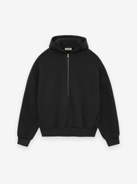 The Half Zip Hoodie is made in Portugal from a heavy cotton blend to contribute depth and softness. The signature Fear of God fit is evident with a relaxed silhouette, dropped shoulders, double-layered hood, and wool rib-knit cuffs, and waist hem. Additional details include a half-zip front, side pockets, and a leather Fear of God label is stitched on the hood. DETAILS - FABRIC: 69% COTTON, 31% POLYESTER, - WOOL RIB KNIT CUFFS, WAIST HEM - RELAXED FIT - DOUBLE LAYER HOOD - HALF-ZIP FRONT - SIDE POCKETS - LEATHER FEAR OF GOD LABEL - MADE IN PORTUGAL