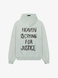 The Heaven Hoodie is crafted in the USA from 100% heavyweight cotton fleece and features a garment wash with a sunfade treatment for an authentic vintage appearance. The hand-printed graphics are inspired by the civil rights era. This double-layer hoodie features a relaxed fit with drop shoulders, side pockets, rib-knit cuffs and waist hem. A Fear of God label is stitched on the hood. DETAILS - 100% cotton fleece - Model is 6'2" 1/2 and wears size Medium in Flint - Relaxed Fit: relaxed body, drop shouders - Garment wash with a sunfade - Hand printed graphics - Double-layer hood - Rib-knit cuffs, waist hem - Side pockets - Fear of God label - Made in USA