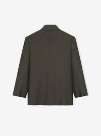 The Single Breasted Blazers is expertly tailored in Italy from 100% virgin wool, featuring a heather chevron pattern and a cupro blend lining. Its timeless design incorporates classic, relaxed proportions to ensure a comfortable fit. Additional details include a peak lapel, a front closure with horn buttons, side pockets, and a Fear of God label stitched at the back collar. DETAILS - Fabric: 100% virgin wool - Lining: 53% Cupro, 47% polybutylene - Relaxed fit - Single breasted - Peak lapel - Horn button - Side pockets - Fear of God label - Made in Italy
