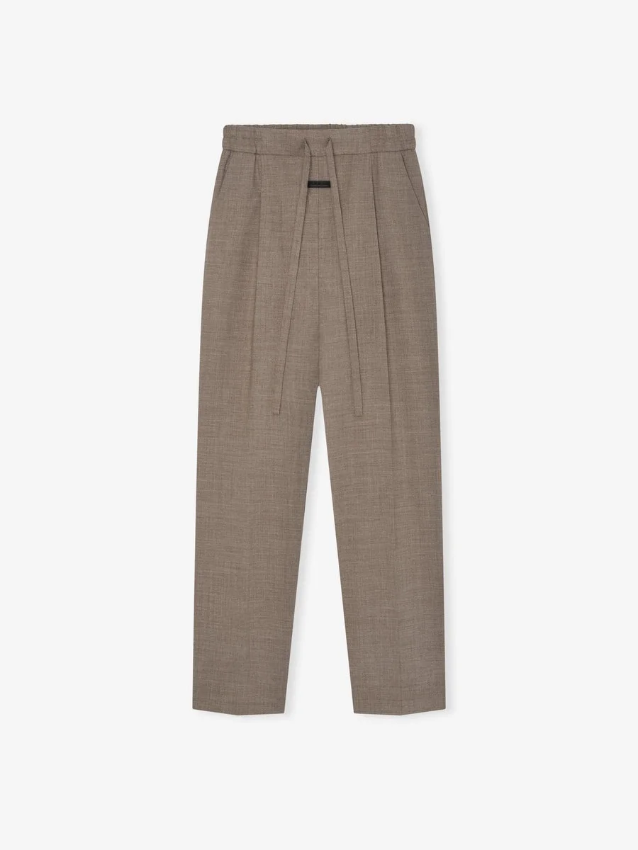 The Drawstring Straight Pant is expertly tailored in Italy from high-twist wool, resulting in a compelling crosshatch texture. These single-pleat pants feature a relaxed, straight-leg design that is suitable for both casual and formal occasions. Additional features include an encased elastic waistband, a self-fabric drawstring, and side pockets. DETAILS - Fabric: 100% high twist wool - Pocketing: 100 % cotton - Model is 6'2" 1/2 and wears size Medium - Single-pleat - Relaxed straight leg - Encased elastic waistband - Self fabric drawstring - Side pockets - Fear of God label - Made in Italy