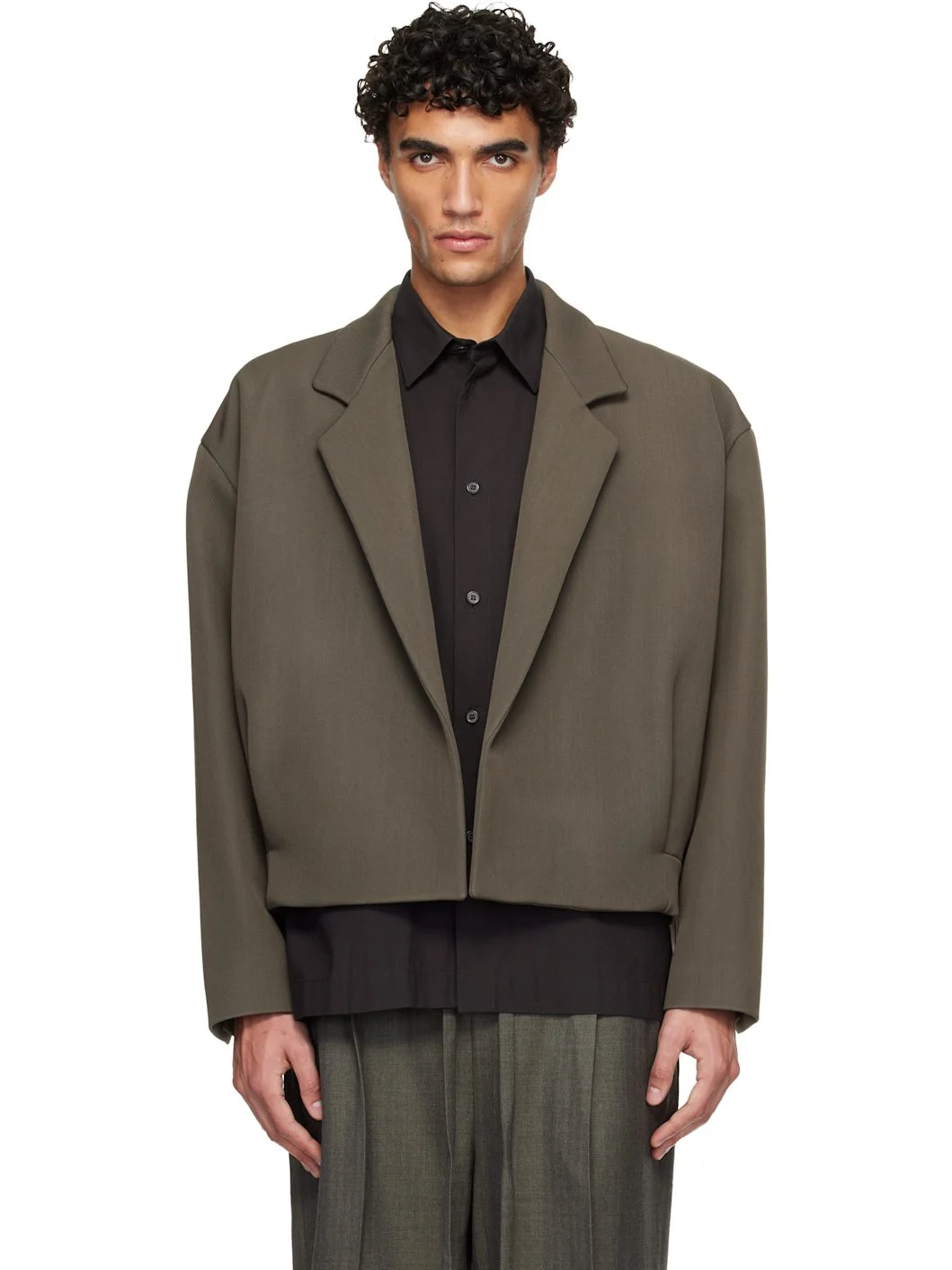 Virgin wool-blend twill blazer. · Notched lapel · Seam pockets at waist · Darts at front and back waist · Dropped shoulders · Leather logo patch at back collar · Satin lining Supplier color: Willow Body: 76% virgin wool, 24% cotton. Lining: 53% cupro, 47% polybutylene. Pocket lining: 100% cotton. Made in Italy 252782M195007
