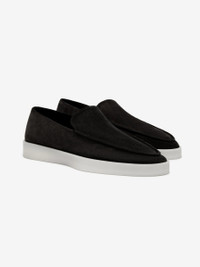 The Loafer is crafted in Italy from soft textured Italian suede with rubber moc low outsole. The traditional slip-on Loafer is evident in the moccasin stitch, but updated in a contemporary streamlined silhouette. The style is branded with a Fear of God black bar label on the heel. DETAILS - FABRIC: ITALIAN SUEDE - OUTSOLE: RUBBER MOC LOW SOLE - SLIP–ON STYLE - FEAR OF GOD BLACK BAR LABEL - MADE IN ITALY