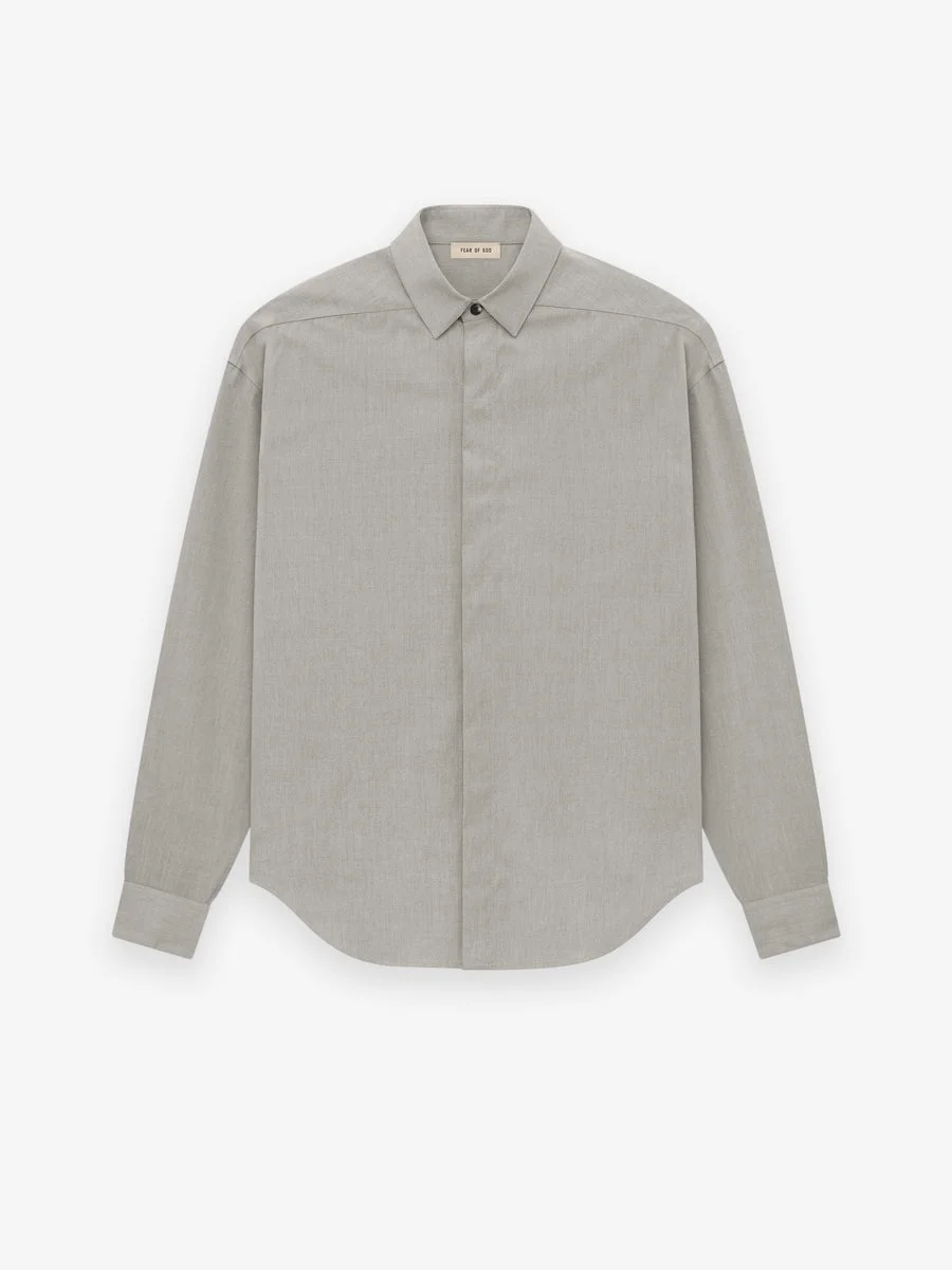 The Button Up Shirt is stitched in Italy from virgin wool-cotton blend with elastane for stretch comfort. The classic Oxford shirt style is remade with a minimalist covered placket with horn buttons. A Fear of God label is stitched at the back collar. DETAILS - FABRIC: 46% VIRGIN WOOL, 52% COTTON, 2% ELASTANE - POINT COLLAR - COVERED PLACKET - HORN BUTTONS - FEAR OF GOD LABEL - MADE IN ITALY