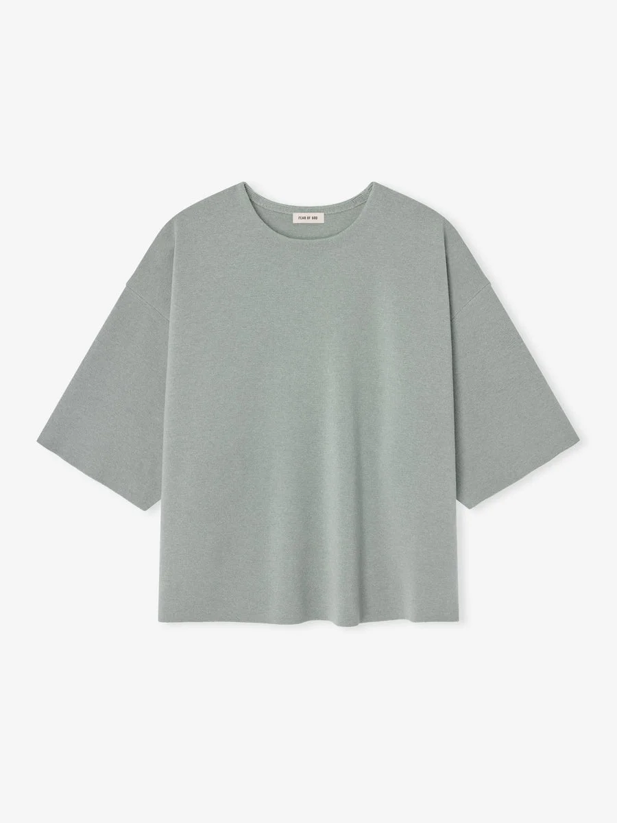 The Knit Tee is crafted in Italy from 100% merino wool, offering an elevated t-shirt proposition. This contemporary crewneck design features soft proportions, a relaxed fit, dropped shoulders, and 3/4 sleeves. DETAILS - 100% Merino wool - Relaxed fit: relaxed in body, drop shoulders, 3/4 sleeves - Rib-knit crewneck - Fear of God label - Made in Italy