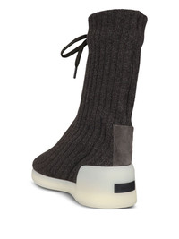 Moc knitted boots Highlights - Chocolate brown - Elasticated drawstring waistband - Flatform sole - Logo at the sole Made in Italy Composition Outer: Wool 80%, Leather 20% Sole: Rubber 100% Lining: Fabric 100%