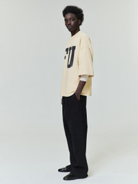 The FU Tee is crafted in the USA from 100% heavyweight cotton jersey and features a garment wash with a sunfade treatment for an authentic vintage appearance. The hand-printed graphics are inspired by the civil rights movement. This rib-knit crewneck tee has a relaxed fit with drop shoulders and 3/4 sleeves. A Fear of God label is stitched at the back collar. DETAILS - 100% cotton jersey, 290 gsm - Model is 6'2" 1/2 and wears size Medium in Gold Haze - Relaxed fit: loose in body, drop shoulders - Garment wash with a sunfade - Hand printed civil rights graphics - Rib-knit crewneck - Made in USA