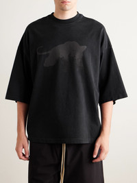 Fear of God's T-shirt is cut for an oversized fit, providing plenty of room through the shoulders and sleeves. It's cut from soft jersey and printed with the silhouette of a panther at the front. Size & Fit - Intended to be oversized; we recommend sizing down if you prefer a closer fit - Weighted, stretchy fabric - Model is shown wearing a M - Model measures: chest 38"/ 96cm, height 6'1"/ 185cm Details & Care - Black cotton-jersey - 100% cotton