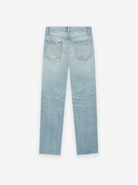 The Straight 5 Pocket Jean is made in Japan from hand distressed and repaired medium indigo denim for an authentic vintage appearance. The timeless straight-leg fit is detailed with antique brass hardware, raw ankle hem, and a Fear of God label is stitched on center front. DETAILS - 100% COTTON DENIM - REPAIRED MEDIUM INDIGO DENIM - CLASSIC STRAIGHT LEG FIT - 5-POCKET STYLE - ANTIQUE BRASS HARDWARE - RAW ANKLE HEM - FEAR OF GOD LABEL - MADE IN JAPAN