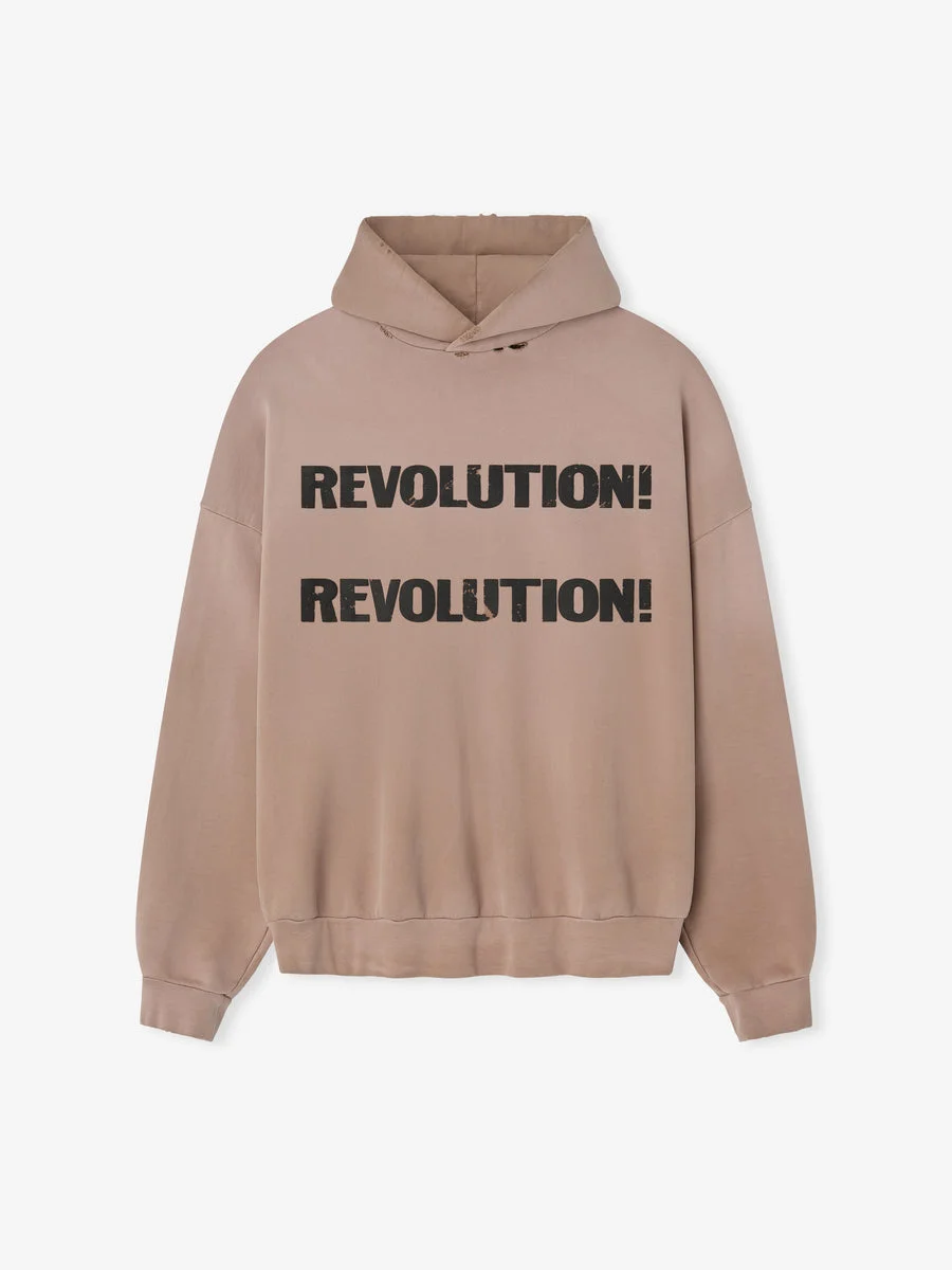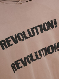 The Revolution Hoodie is crafted in the USA from 100% heavyweight cotton fleece and features a sunfade wash with hand-distressing for an authentic vintage appearance. The hand-printed graphics are inspired by the civil rights movement. This double-layer hoodie features a shrunken, cropped fit with drop shoulders, rib-knit cuffs and waist hem. A Fear of God label is stitched on the hood. Fit Note: size up for a relaxed fit. DETAILS - 100% cotton fleece - Model is 6'2" 1/2 and wears size Medium in Dune Pearl - Relaxed Fit: relaxed body, drop shoulders - Garment wash with a sunfade - Hand printed graphics - Double-layer hood - Rib-knit cuffs, waist hem - Side pockets - Fear of God label - Made in USA
