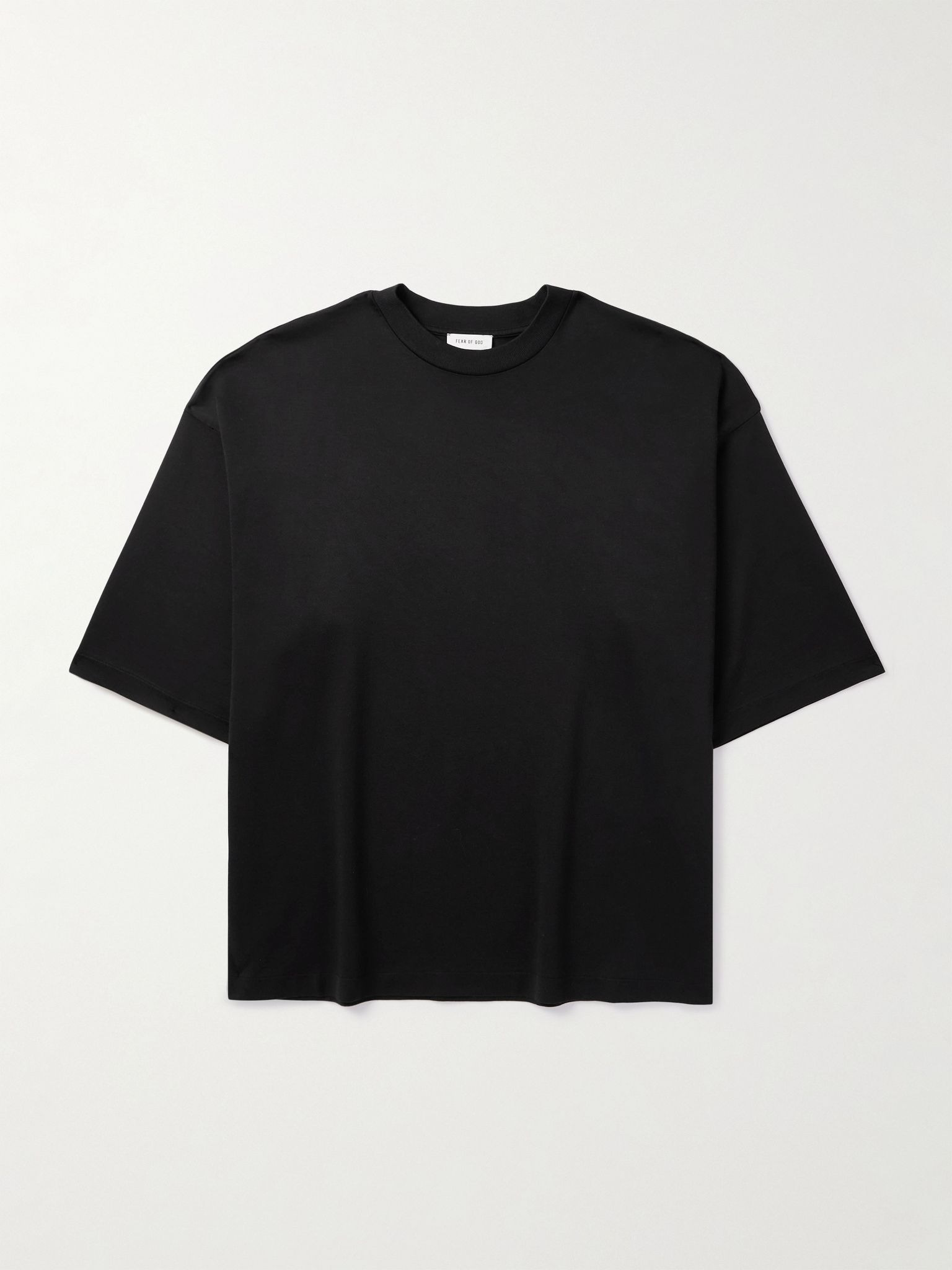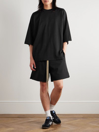 Fear of God's T-shirt is minimally detailed with a logo-embossed leather tab at the back. Made from cotton-blend jersey, it has an oversized shape with dropped shoulder seams and a ribbed crew neck. Wear yours with distressed jeans and sneakers. Size & Fit - Intended to be oversized; we recommend sizing down if you prefer a closer fit - Mid-weight, slightly stretchy fabric - Model is shown wearing a M - Model measures: chest 38"/ 96cm, height 6'2"/ 188cm Details & Care - Black cotton-jersey - 100% cotton - Machine wash