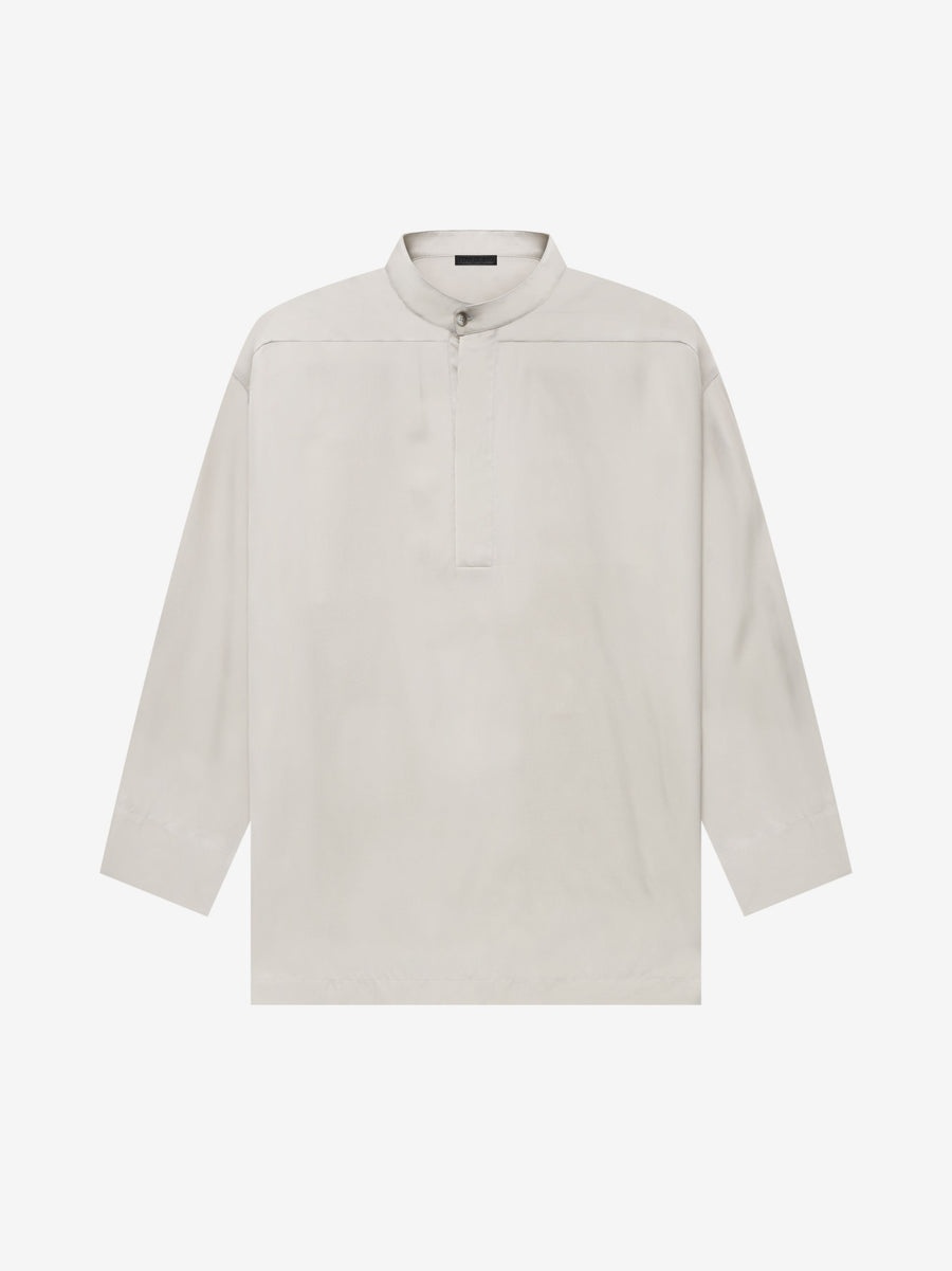 Made in Italy, elegance is embodied in the silk blend lounge pieces. The lightweight Italian fabric provides a luxurious silken hand feel and cool comfort. The Lounge Shirt exhibits a stylish drape with a mandarin collar and a concealed horn button placket for adjustability. Additional key details include a forward shoulder seam, back yoke, and leather Fear of God label. DETAILS - RELAXED FIT - MANDARIN COLLAR - LEATHER FEAR OF GOD LABEL - CONCEALED HORN BUTTON PLACKET - 53% VISCOSE / 47% SILK - MADE IN ITALY
