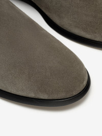 The Suede Slip On is crafted from a supple suede leather with a handmade wooden sole. The slip-on style is designed with a contemporary silhouette , and collapsible heel cup.