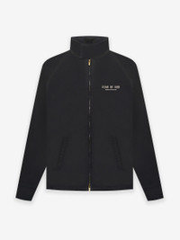 The souvenir jacket is designed to feel like a vintage find. The black Japanese cotton is given a sun fade process for an authentic aged appearance and is fully lined in Japanese cupro to add a lux interior touch. Fear of God Seventh Collection is branded in hand textured, velvet flocking on the front and back of the jacket. DETAILS - VINTAGE SUN FADE - DEBOSSED BRANDED VELCRO - TEXTURED VELVET FLOCKING BRANDING - FRONT WELT POCKETS - RAGLAN SLEEVES - JAPANESE CUPRO LINING - JAPANESE COTTON - MADE IN USA - MODEL IS 6FT 1IN AND WEARING A SIZE M