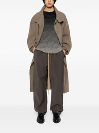 split-knee wide-leg pants Highlights - Dark grey - Elasticated drawstring waistband - Two side slash pockets - Drawstring hem Made in Italy Composition Polyester 60%, Wool 28%, Polyurethane 9%, Elastane 3% SIZE & FIT Model measurements Height 6 ft 2 in(1.88 m) Bust/Chest 33.46 in(85 cm) Hips 36.22 in(92 cm) Waist 27.55 in(70 cm) FittingInformation Designed for a tapered leg, offering a loose unrestricted fit over the leg with a closer fit towards the ankle The internal drawstring at the hem allows for fitted preferences at the ankle Made from a midweight stretch fabric, this piece offers elasticity and flexibility when worn