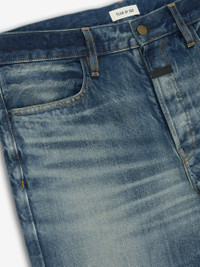 The Straight 5 Pocket Jean is crafted in Japan from 100% cotton denim and features a medium indigo wash with hand distressing. This five pocket jean is designed with a relaxed, straight leg for timeless style and everyday comfort. Additionally, there is a Fear of God label located at the center front. DETAILS - 100% cotton canvas - Medium vintage wash - Relaxed, straight leg - 5-pocket style - Antique metal hardware - Fear of God label - Made in Japan