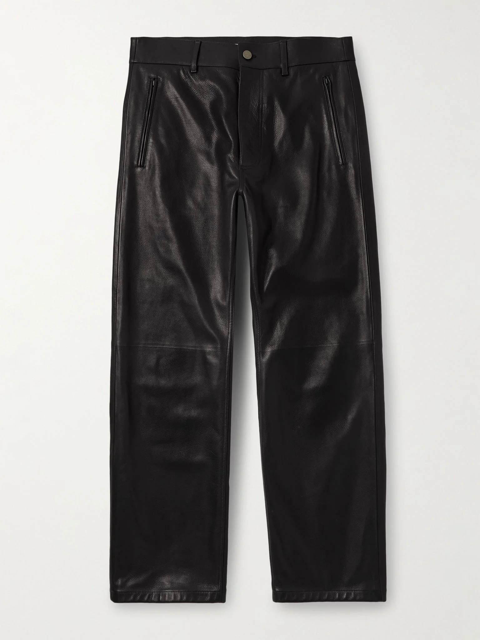Straight-Leg Full-Grain Leather Trousers Black