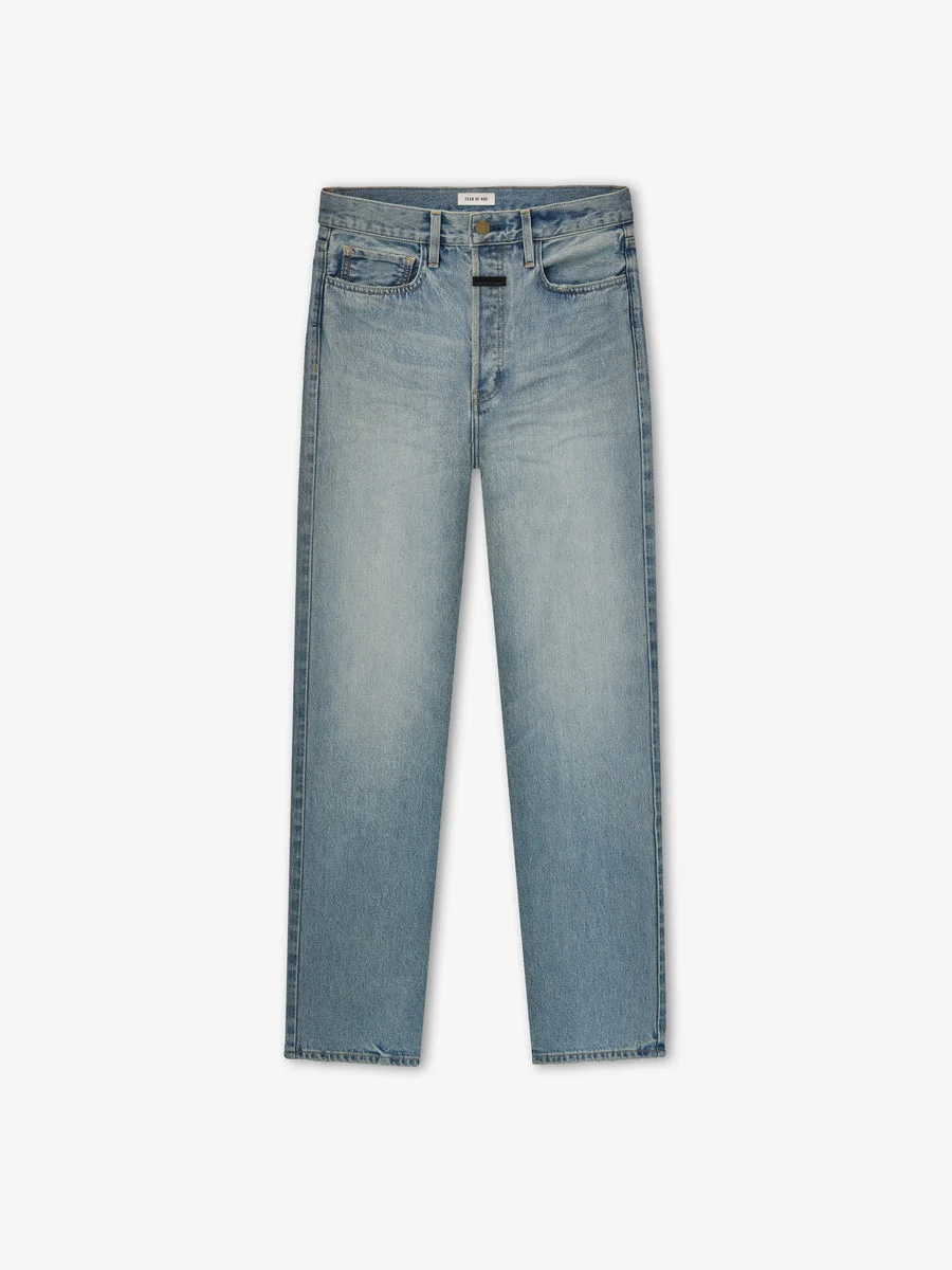 The Straight 5 Pocket Jean is crafted in Japan from 100% cotton denim and features a light indigo wash with hand distressing. This five pocket jean is designed with a relaxed, straight leg for timeless style and everyday comfort. Additionally, there is a Fear of God label located at the center front. DETAILS - 100% cotton Japanese Denim - Light indigo vintage wash - Relaxed, straight leg - 5-pocket style - Antique metal hardware - Fear of God label - Made in Japan