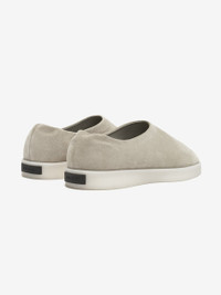 The Mule is made from Italian flat leather and is designed as a modern, minimalist slip-on shoe. This casual style features a rubber moc low sole for extra comfort and is branded with a Fear of God black bar label on the heel. DETAILS - FABRIC: ITALIAN SUEDE - OUTSOLE: RUBBER MOC LOW SOLE - SLIP-ON STYLE - FEAR OF GOD BLACK BAR LABEL - MADE IN ITALY