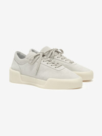 The Aerobic Low is crafted from premium flat Italian leather in a timeless sportswear silhouette. The sculpted low-top sneaker has a laced front, rubber aerobic outsole, and a Fear of God black bar label on the heel. DETAILS - FABRIC: ITALIAN SUEDE - OUTSOLE: RUBBER AEROBIC SOLE - LOW TOP STYLE - FRONT LACES - FEAR OF GOD BLACK BAR LABEL - MADE IN ITALY