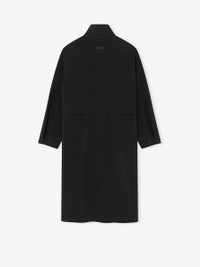 The High Neck Trench is crafted from a stretch wool blend fabric that features water-resistant properties. This sports-inspired jacket includes zipper front, zipper chest pockets, and a belt for adjustable styling. Additionally, the Fear of God label is stitched at the back of the collar. DETAILS - 60% polyester, 28% wool, 9% polyurethane, 3% elastane - Relaxed fit: relaxed in body, drop shoulders - Mockneck - Full front zipper - Side pockets - Fear of God label - Made in Italy