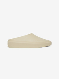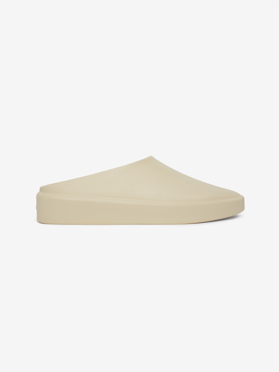 The California is a backless slip-on shoe with a clean and sculptural design that strictly emphasizes functionality, with backless construction to slip on and off with ease, an inner vent to provide air flow, and a raised tread for traction. The shoe is entirely made of innovative foam rubber and produced in Italy from patented XL Extralight® Technology. The custom Extrabounce compound is exclusively developed for Fear of God, a material that is 3 x lighter than common foam and allows for greater flexibility, comfort and durability. The timeless design, ease and quality allows movement through a modern lifestyle, for any occasion. All sales final on The California. DETAILS - BACKLESS SLIP-ON SHOE - INNER AIR VENT - RAISED TREAD - DEBOSSED FEAR OF GOD LOGO ON HEEL - CUSTOM EXTRABOUNCE FOAM - MADE IN ITALY - IMPORTANT NOTE: - Similar to leather, the overall nature of the foam is to wrinkle, crease, and patina to grow more unique and beautiful with age or use.