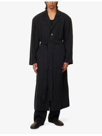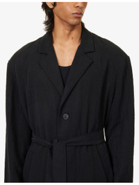 PRODUCT DETAILS - Fear of God woven overcoat - 93% lyocell, 7% polyamide - Button fastening - Relaxed fit, notch lapel, long sleeves, unlined, side pockets, slight texture to fabrication, brand tag at back neck - Dry clean - Size medium: length 56in / 142.2cm, chest 54in / 137cm - Model is 6ft 2in/1.88m and wears a size medium - Lightweight, non-stretch Ref: R04519822