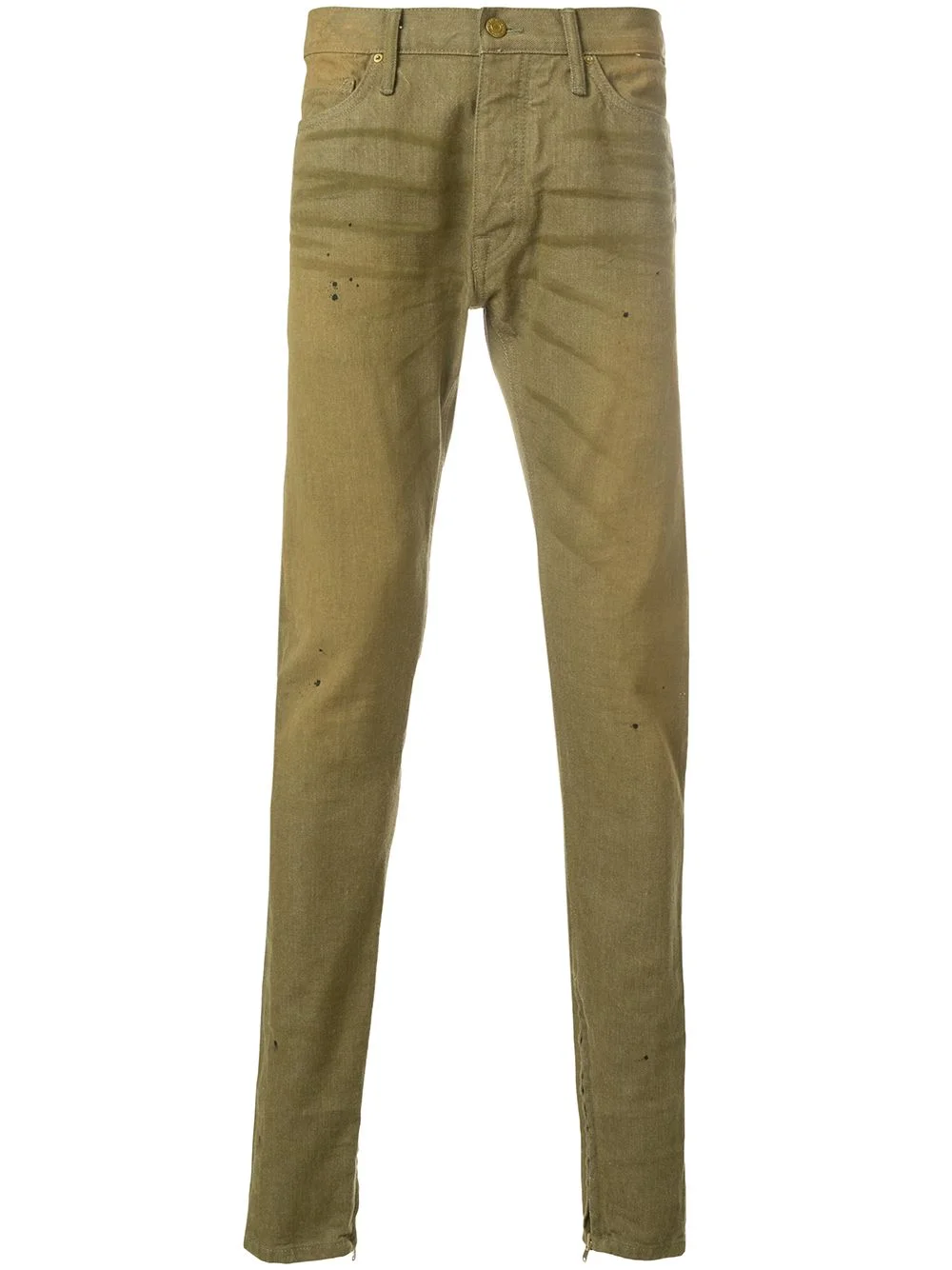whisker detail trousers Olive green cotton whisker detail trousers from Fear Of God featuring a button and zip fly, a five pocket design, a waistband with belt loops, whiskering at the thigh and a straight leg. Made in United States Composition Cotton 100% SIZE & FIT Model measurements Height 6 ft 2 in(1.89 m) Bust/Chest 37.79 in(96 cm) Hips 37 in(94 cm) Waist 29.92 in(76 cm) Washing instructions Machine Wash