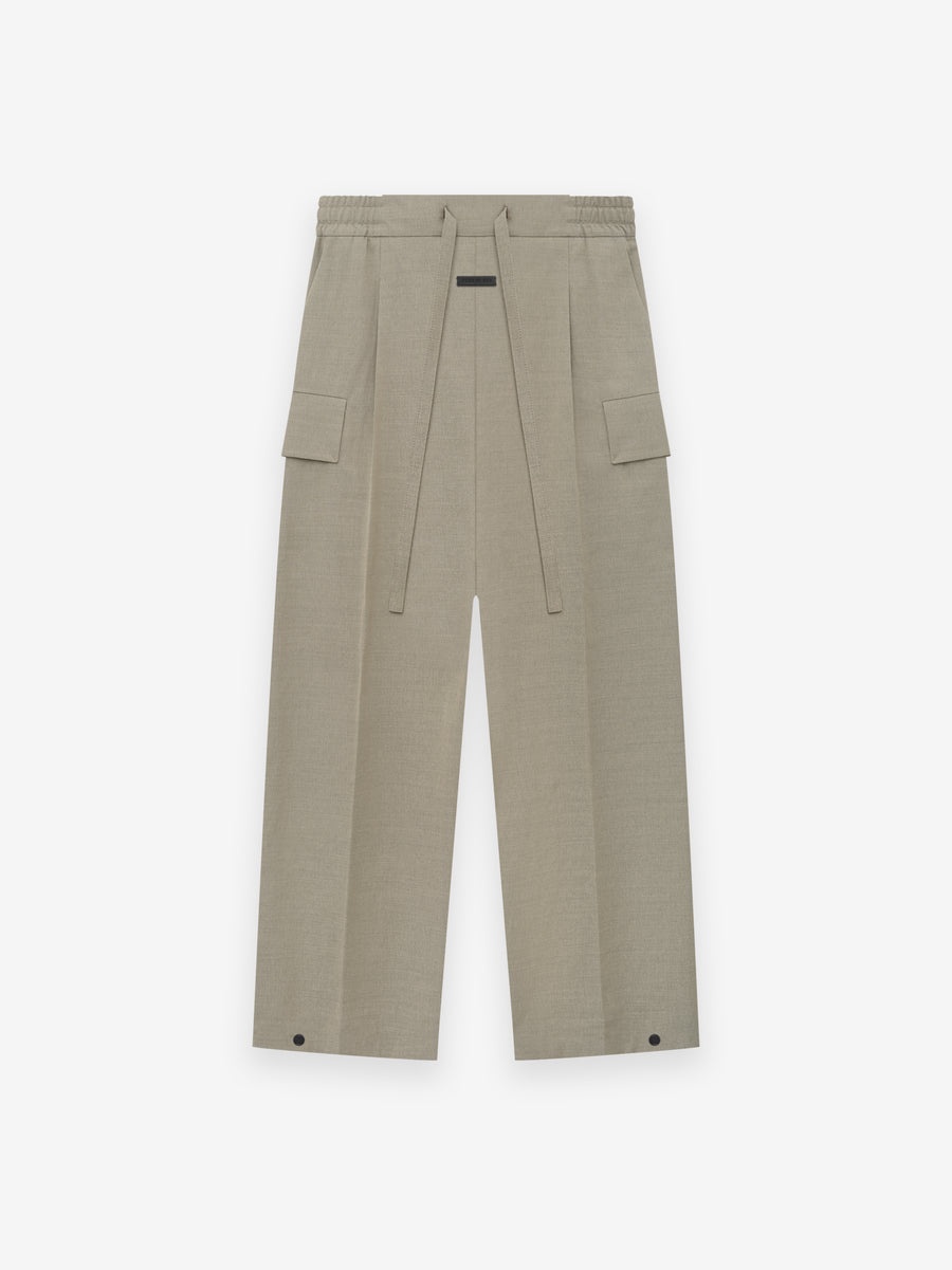 The Cargo Pant is crafted in Italy from Nylon/Wool for stretch comfort. The military-inspired design balances a substantially relaxed leg with a strong structure. Additional details include cargo pockets, side pockets, an encased elastic waistband with a drawstring. A Fear of God label is stitched on the center front. DETAILS - FABRIC: 72% NYLON, 28% VIRGIN WOOL - LINING: 100% POLYESTER - WIDE LEG FIT - SINGLE PLEAT - CARGO AND SIDE POCKETS - ELASTIC WAISTBAND WITH DRAWSTRING - FEAR OF GOD LABEL - MADE IN ITALY