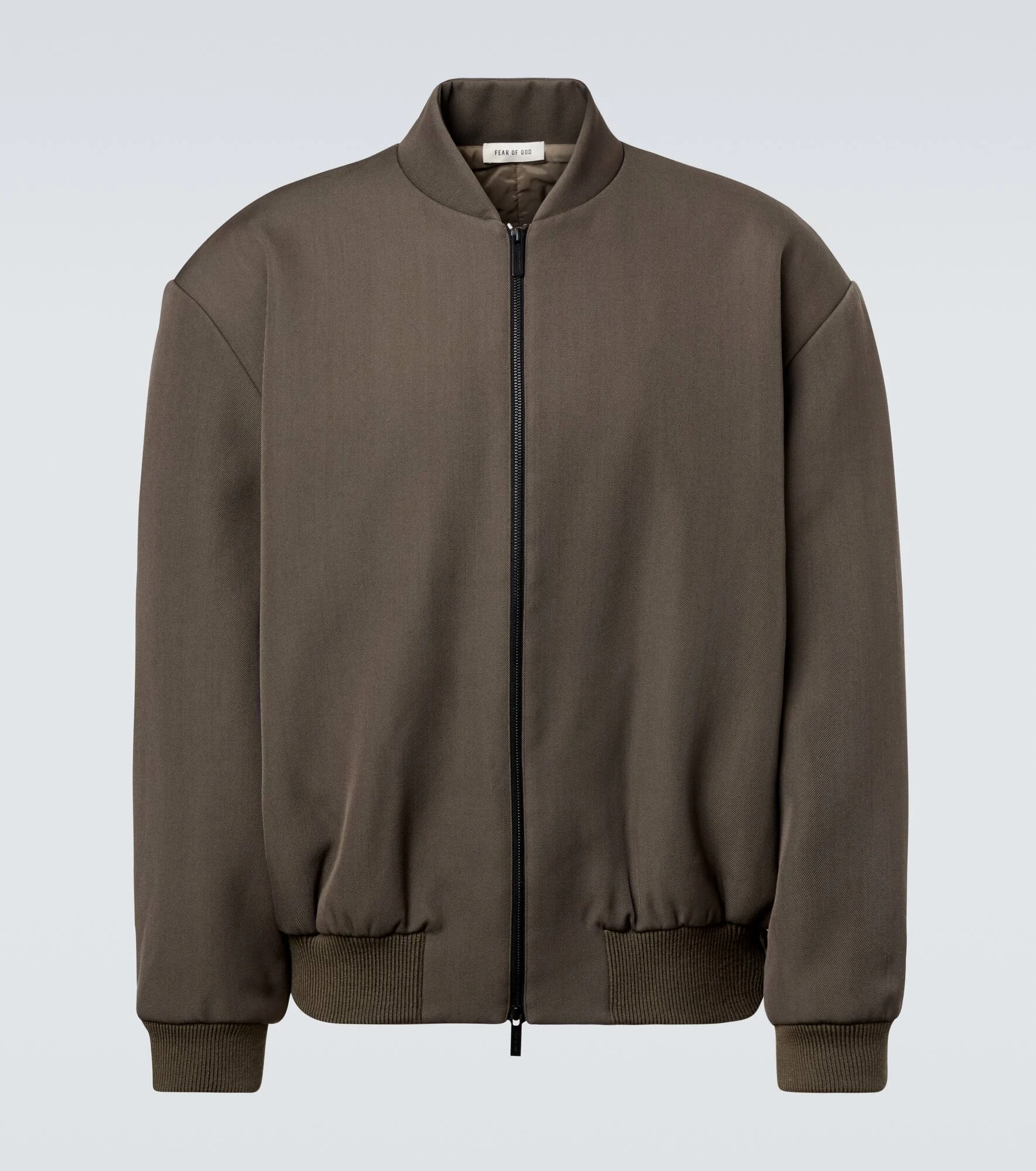 Fear of God redefines American luxury through relaxed tailoring, muted tones, and elevated everyday essentials. Made from a fine blend of wool and cotton, this brown blouson showcases clean lines and refined, ribbed-knit trims. Product Details - Material: 76% wool, 24% cotton - Care instructions: dry clean - Made in Italy - Designer color name: Willo - Item color: green - Lining: 53% cupro, 47% polybutylene terephthalate - Pocket lining: 100% cotton - Filling: 100% polyester - Trim: 91% wool, 7% polyamide, 2% elastane - Closure: two-way zipped front - Pockets: side slit pockets - Cuff: ribbed - Hem: ribbed - Item number: P01063831 Size & Fit - True to size - Oversized shoulders - Shoulder pad inserts - Designed for a loose fit - Elasticated hem - Non-stretchy fabric - Falls to the hip - Height of model is 189cm-74.5" and wears a size L