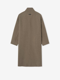 The Highneck Coat is crafted in Italy from luxurious double-faced wool-cashmere, which offers a luxuriously soft touch and an unstructured design that enhances the fabric's drape. Its double-breasted style features a voluminous body for comfortable layering. Additional details include horn button closures, a chest pocket, side pockets, and a self-fabric belt. DETAILS - Fabric: 90% wool, 10% cashmere - Models are wearing size Medium - Relaxed fit - Double breasted - Highneck - Horn button - Side pockets - Fear of God label - Made in Italy