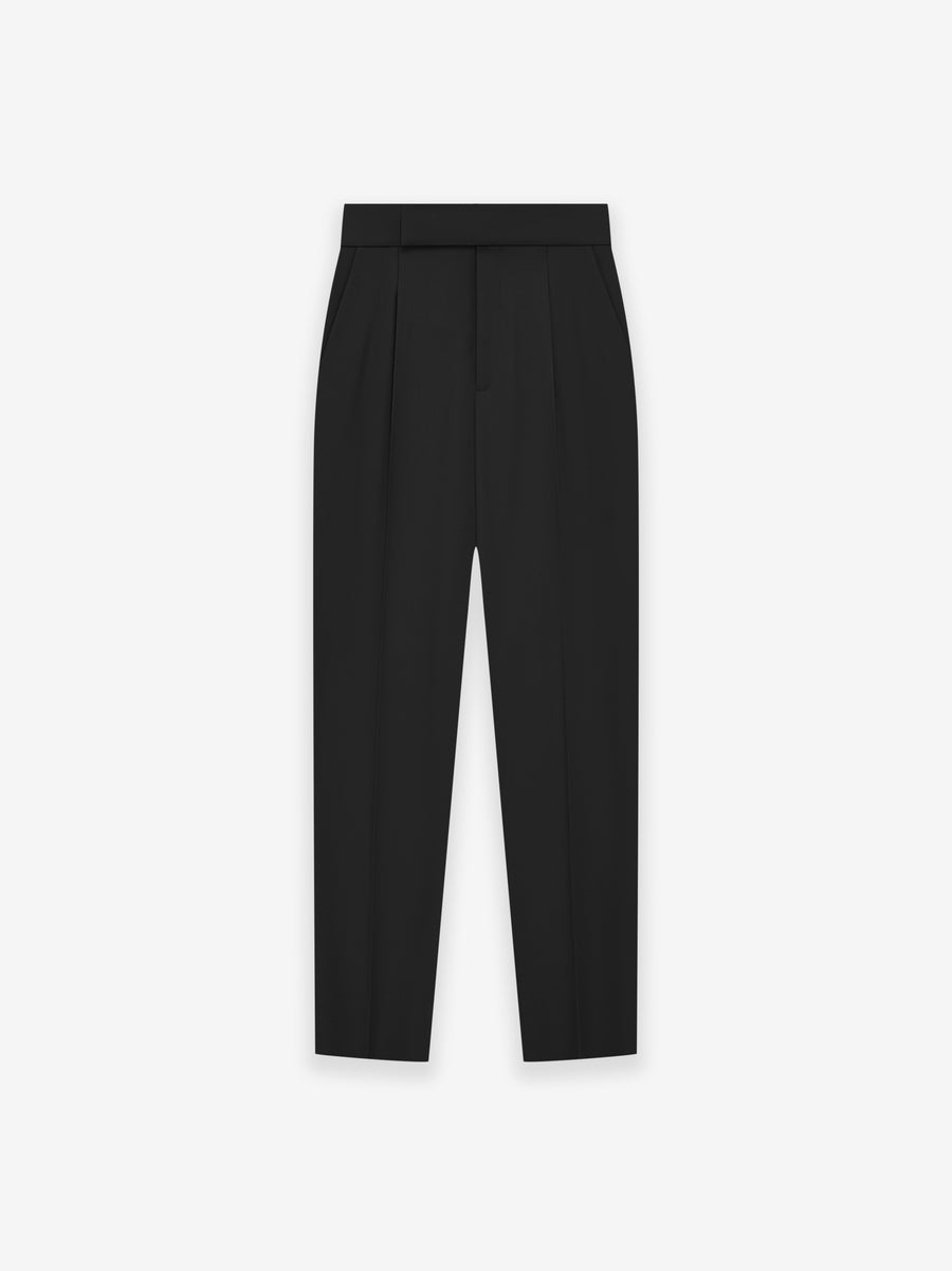 The single pleat tapered trouser is tailored in Italy from the traditionally bespoke wool gabardine for year-round comfort. The classic, straight-leg fit perfectly pairs with the matching Lapelless Blazer. Functional details include side and back welt pockets. A Fear of God leather label is stitched on the back. DETAILS - 100% VIRGIN WOOL GABARDINE - CLASSIC STRAIGHT LEG - SINGLE PLEAT - SIDE POCKETS, BACK WELT POCKETS - LEATHER FEAR OF GOD LABEL - MADE IN ITALY