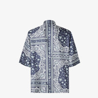 Shirt with Italian-style collar and short sleeves. Regular-fit style. Concealed button fastening. Made of silk with an all-over bandana coral print in white and blue. Made in Italy Composition: 100% silk Size worn: 48 IT. The model is 186 cm tall Product Code: FS0795AUVQF0U6K