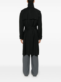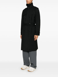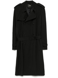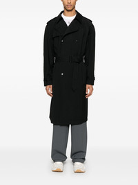 belted trench coat Highlights - Black - Double-breasted button fastening - Belted cuffs - Internal pocket - Two side welt pockets Made in Italy Composition Lining: Cupro 100% Outer: Virgin Wool 100% SIZE & FIT Model measurements Height 6 ft 2 in(1.87 m) Bust/Chest 38.18 in(97 cm) Hips 36.61 in(93 cm) Waist 29.13 in(74 cm) FittingInformation Designed to be unstructured, offering a loose fit throughout The belt offers adjustability for fitted preferences Made from a midweight non-stretch fabric