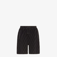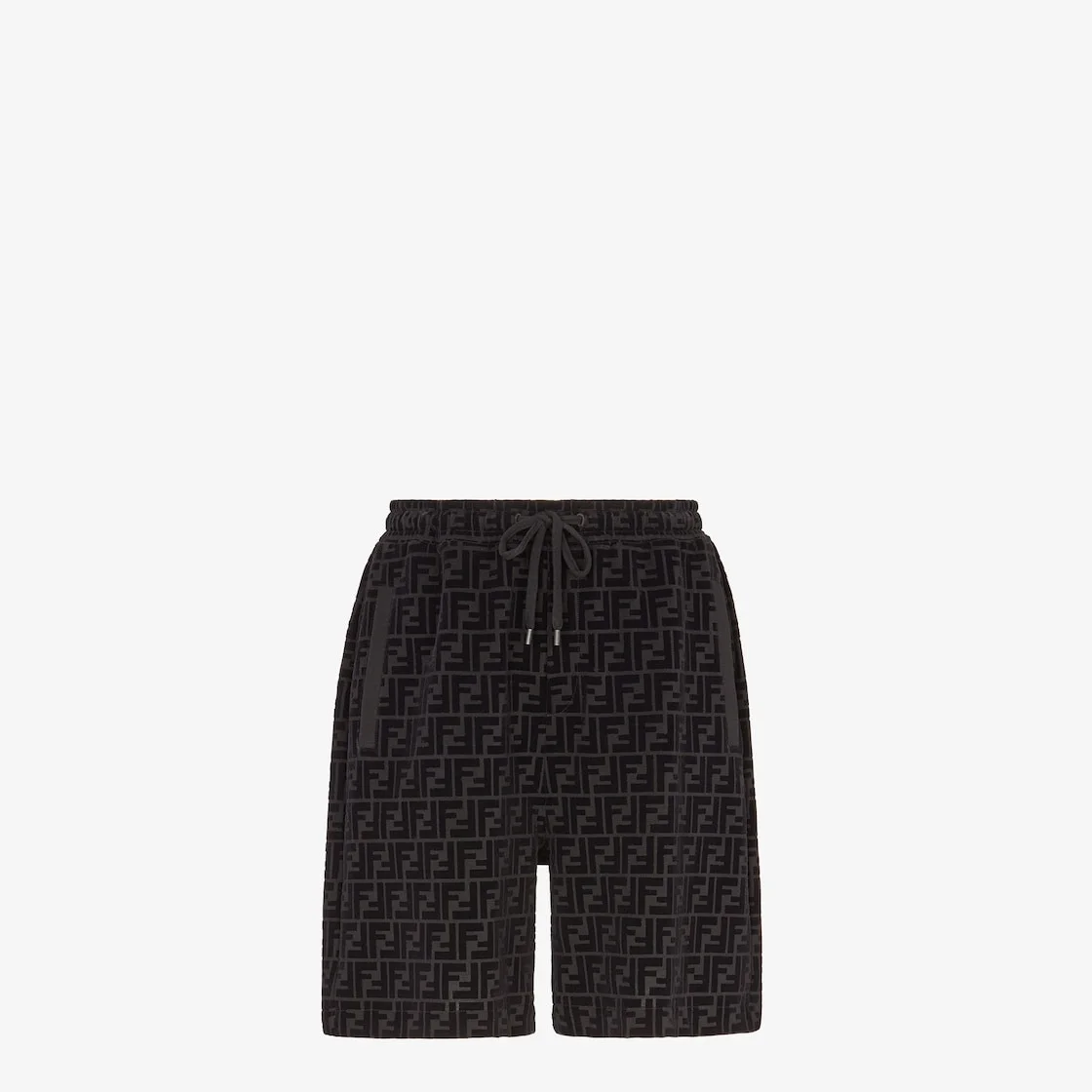 Bermuda pants with side pockets and elasticated drawstring waist. Made of black cotton piqué. Decorated with tone on tone flocked FF motif printed all over. Made in Italy Composition: 100% Cotton Fit: Regular Size worn: 48 IT. The model is 190 cm tall Product Code: FB0689A7D5F0ABB
