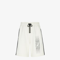 Bermuda pants with elasticated drawstring waist. Made of white cotton. Contrasting printed gradient FF detail on the front in a matte finish. Side inserts in technical mesh with black Fendi Roma 1925 ribbons. Made in Italy Composition: 86% cotton, 14% polyester, 100% polyester, lining: 100% cotton Size worn: 48 IT. The model is 185 cm tall Product Code: FAB910AR58F0RQ0