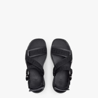 Sandals with cross-over FF motif black jacquard ribbon bands. Snap buckle closure on the sides and velcro strap on the heel with embossed Fendi Flow lettering. Corrugated sole with engraved F. Made in Italy Composition: 100% Polyester, inside: 80% Polyamide, 20% Elastane Product Code: 7X1503AHI2F0TJX
